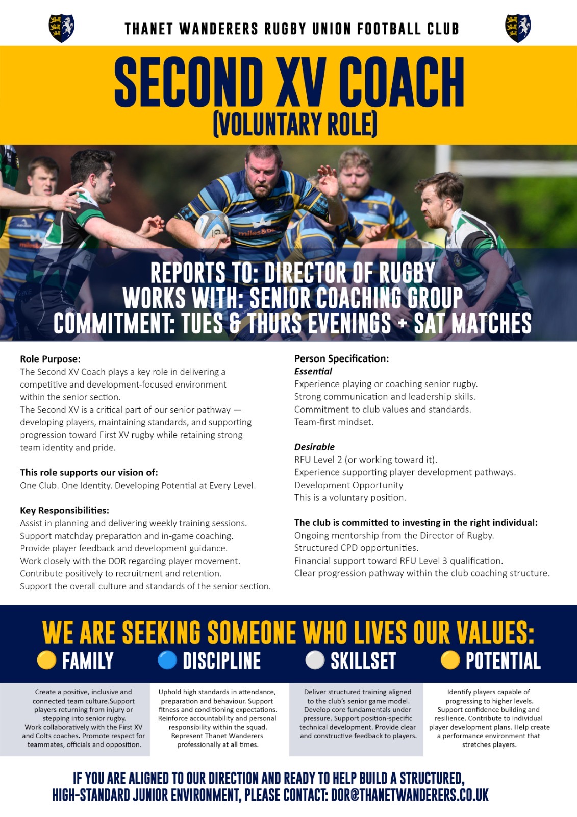 Thanet Wanderers RFC are looking for an ambitious and passionate coach to lead our 2nd XV programme.